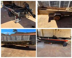 - 01 veículo carretinha semirreboque, marca R/JUNIOR CIA 501. - 01 barco bico fino com carretinha acoplada. - 01 barco marca de fabricação Maré Náutica, modelo Tucuna Boat 600, cor preta com cinco lugares, com carretinha na cor preta acoplada.