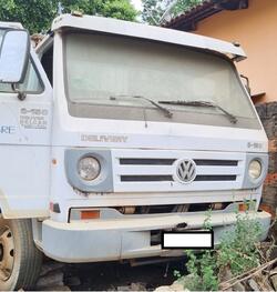 Um caminhão marca Volkswagen, modelo 8-150E Delivery, ano/modelo 2009, cor branca, carroceria aberta de madeira, placa NKK7002/GO.