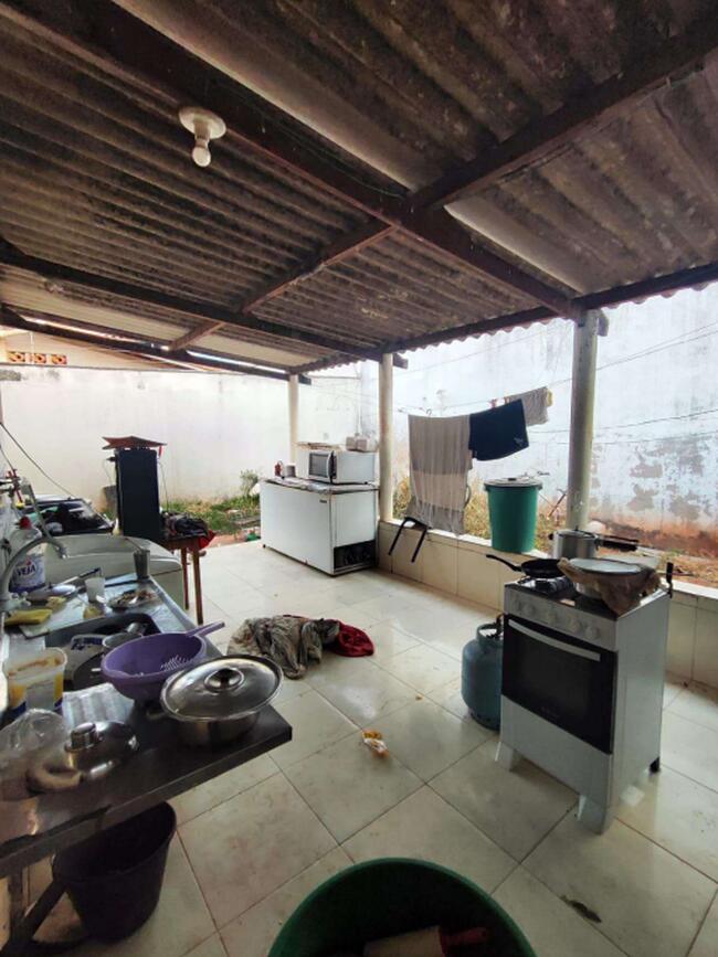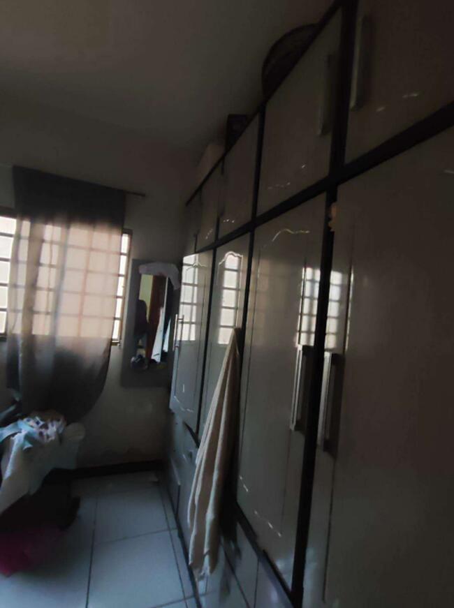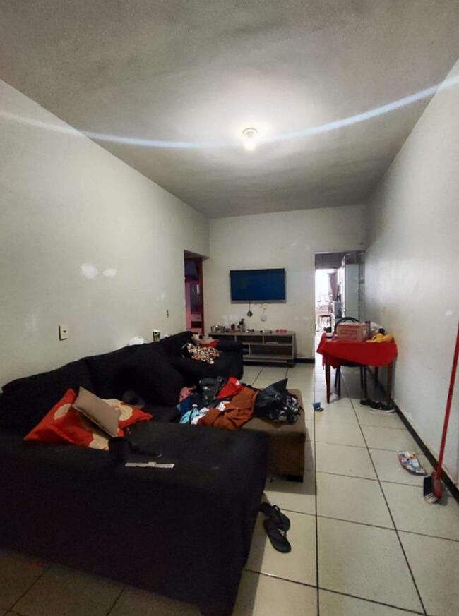 Em vistoria no local, encontrei um imóvel murado, com 03 quartos, sendo uma suíte, banheiro social, sala, cozinha, garagem para dois carros (uma vaga descoberta). Área nos fundos com telha de amianto. A casa possui lage e é coberta de telhas de concreto. Garagem sem acabamento, apenas contrapiso.