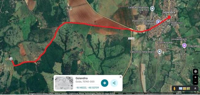 MATRICULA N° 1.182 - DESCRIÇÃO CONFORME CRI: IMÓVEL: Uma gleba de terras de campo e cultura com a área de mais ou menos 2,48 alqueires, correspondentes a 12.58.40HA, inclusive casa de morada, currais, cercas de arame internas e externas, situada neste Município de Goiandira-GO, na Fazenda Água Fria, com as seguintes divisas e confrontações: Começa em um esticador de cercas dividindo com Dinivaldo Antônio dos Reis; daí, por cerca de arame até a divisa de Onofre Tristão Cavalcante, continuando pela mesma cerca até um canto em divisa de Geraldo Tristão Cavalcante; daí, à direita atravessando a estrada Goiandira Dourados em divisa de Manoel Felício dos Santos, continuando dividindo com este, por cerca até a divisa de João Batista Tristão, em um canto de cerca; daí, a direita dividindo com o mesmo atravessando novamente a estrada; até o esticador de cerca em divisa de Dinivaldo Antônio dos Reis, onde começou. Cadastrada no INCRA sob nº 935.077.002.895; área total: 244,1; módulo: 35,0; nº de módulos: 6,28; fração mínima de parcelamento: 3,0.