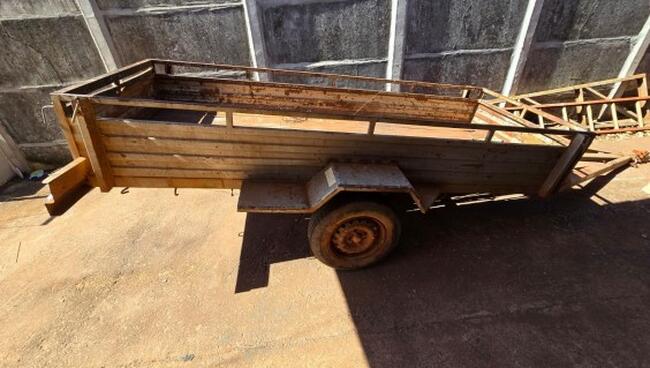 01 veículo carretinha semirreboque, marca R/JUNIOR CIA 501 Placa PRS-5047, Ano de Fabricação/Ano Modelo 2018/2018, com as seguintes características: pneus de meia vida para lisos, lanternas quebradas, lataria enferrujada. Avalio o referido bem em R$ 1.500,00 (um mil e quinhentos reais).